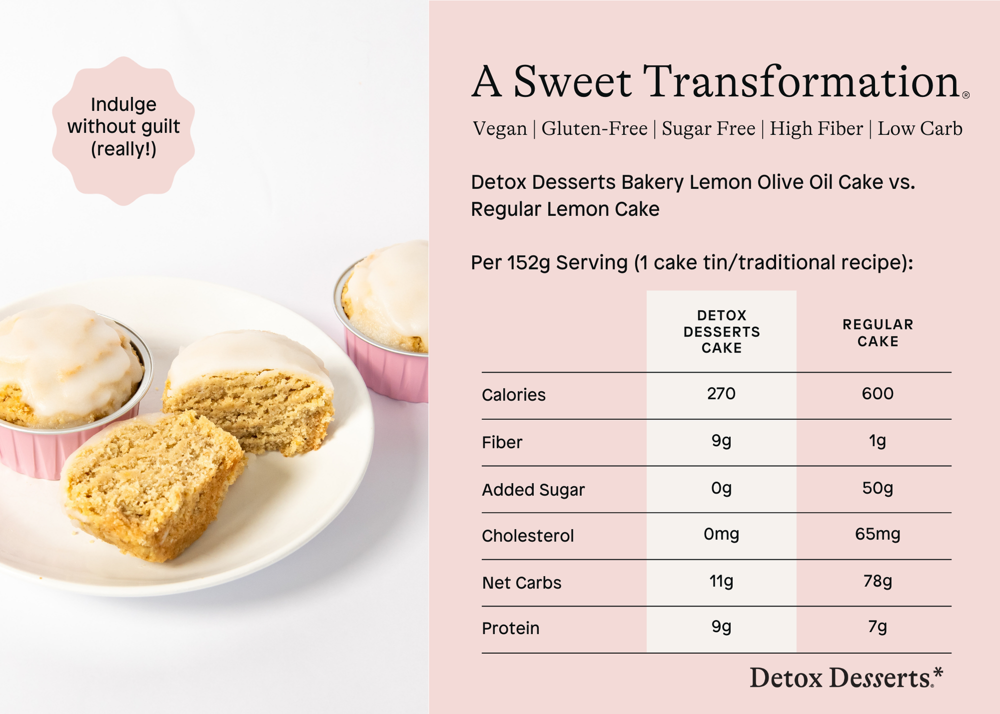 Detox Desserts Lemon Olive Oil Cake vs. Regular Lemon Cake (per 152g serving)