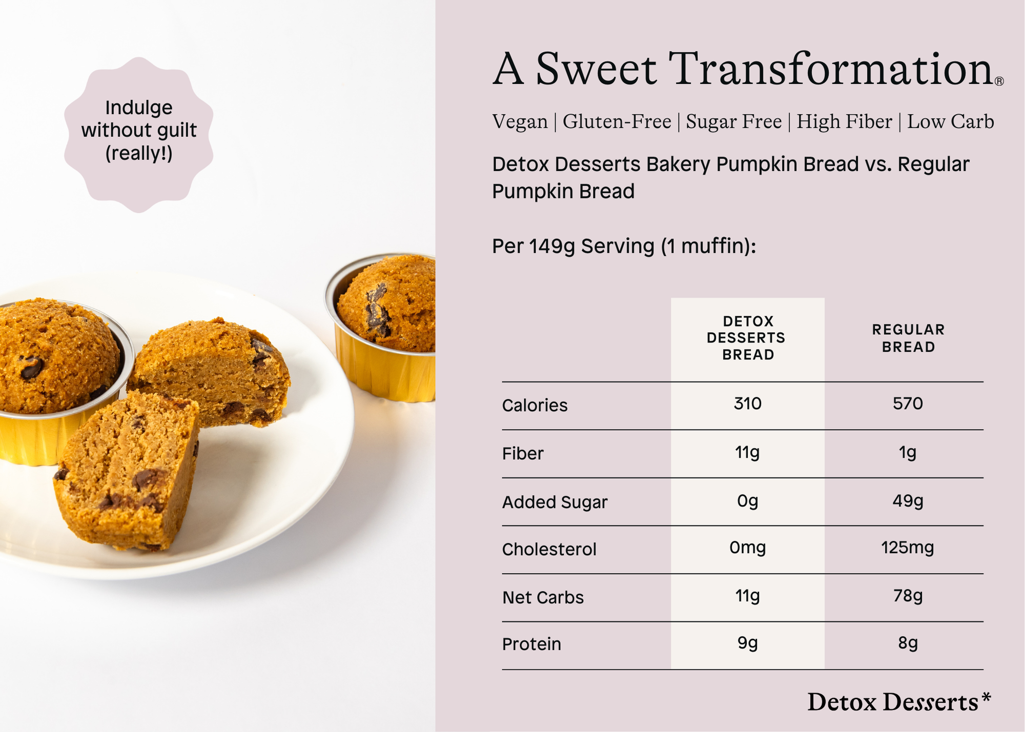 Detox Desserts Bread vs. Regular Sweet Bread (per 129g)