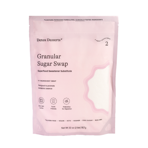Unlike high-sugar sweets, Detox Desserts prevent blood sugar and insulin spikes, providing a steady flow of energy. Zero-calorie sweeteners and high-fiber ingredients in our Swaps slow the rate of digestion and keep you full for longer.